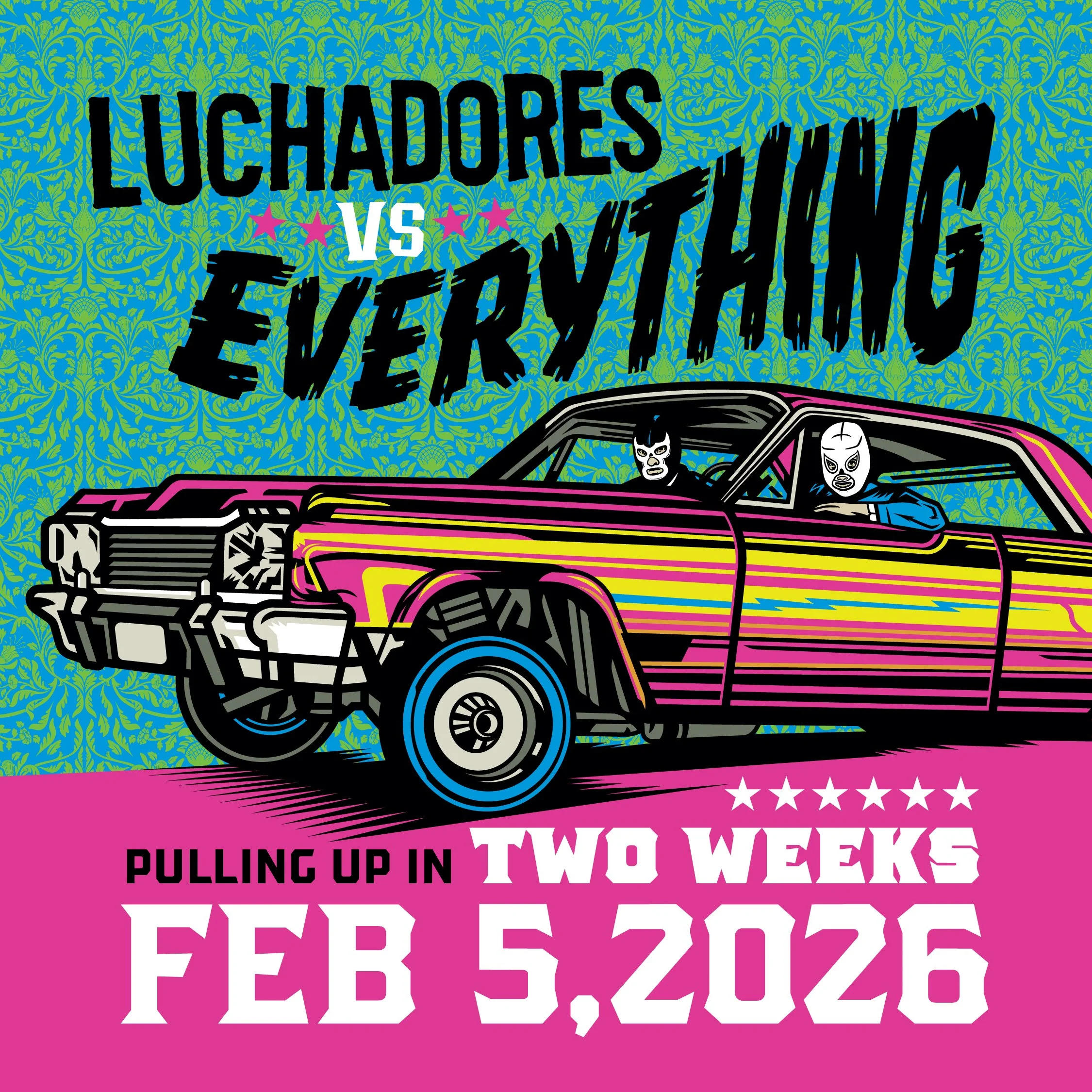 Luchadores vs Everything comes to Kickstarter on February 5, 2026! Click on the image or this link or the link above to preview all the good stuff! Lots of options, bonus art, and rewards to make your shelves, walls, and hearts happy.
